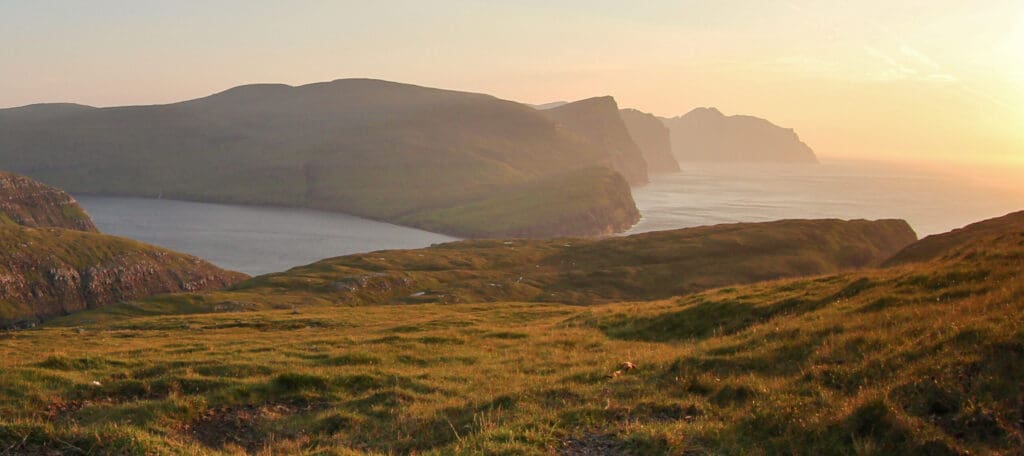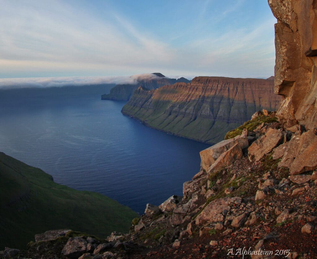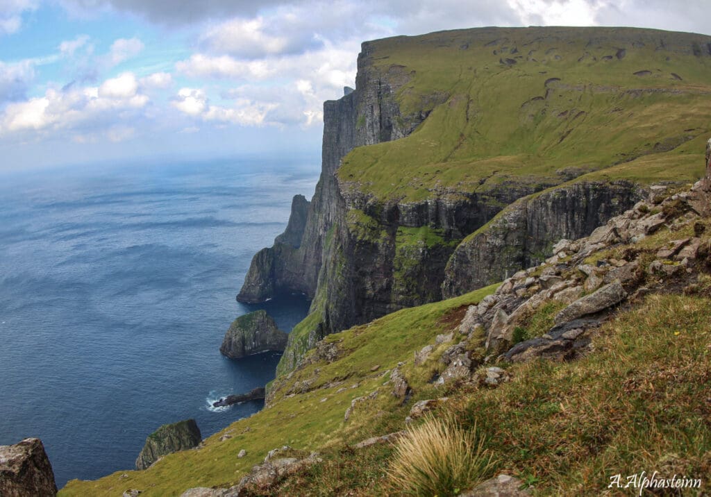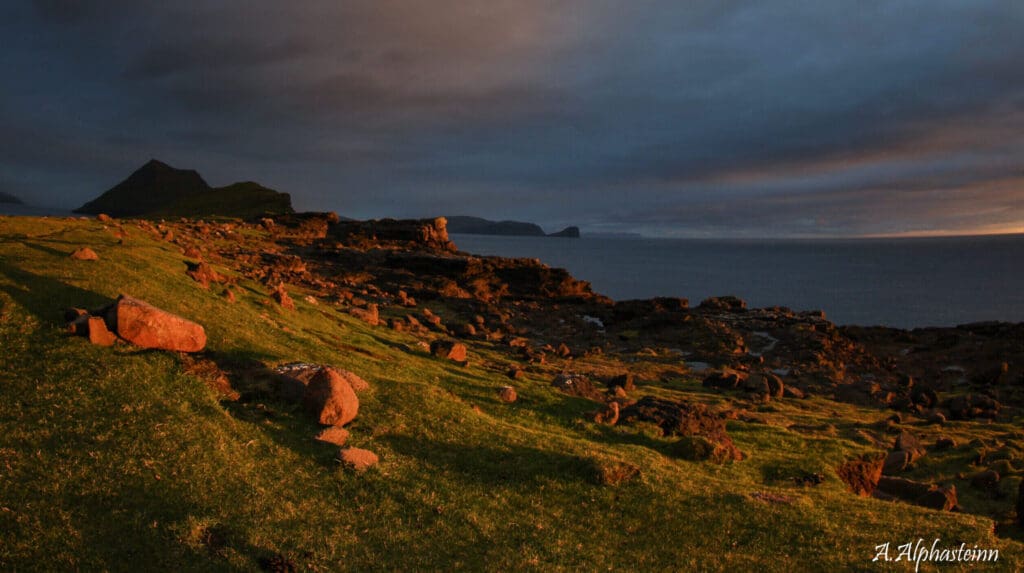 Der Nordwesten von Färöer bietet beides: weitläufiges Gebiet und schroffe Klippen. Es ist ein gutes Gebiet um für 5-7 Tage zu verschwinden und in seiner inneren Schmiede tätig zu sein. Es ist eine wunderschöne Gegend wo man sich zwischen leichten und schwierigeren Routen entscheiden kann. Da Du Dich hier an den Westklippen befindest, hast Du viel Wind und atemberaubende Sonnenuntergänge.