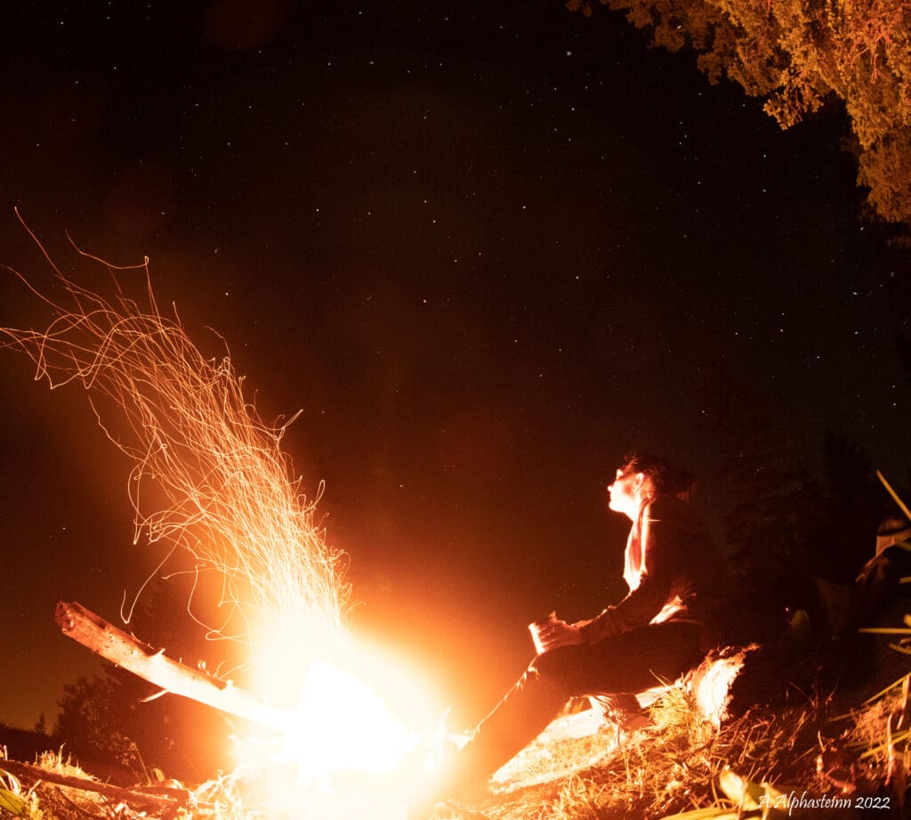 In der Nacht wird Feuer entzündet. Die Nacht wird erhellt und so auch der eigene Geist und sein Bewusstsein. Durch das Feuermachen achten wir unsere Ahnen, feiern ihren Weg durch die Zeit und bedanken uns für das Buch des Lebens, welches sie uns mit der Geburt weitergegeben haben.