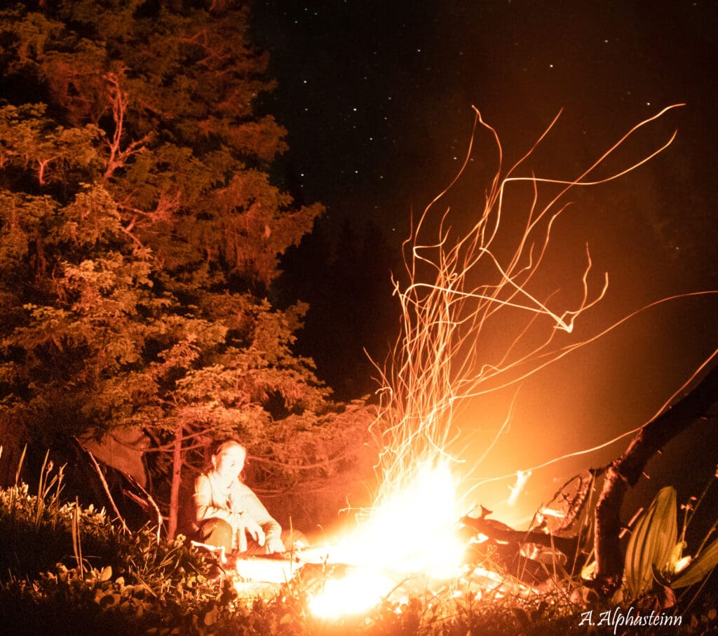 Natürlicherweise finden wir uns bei Einbruch der Dunkelheit am Lagerplatz ein. Manchmal dauert die Wanderung aber auch in die Nacht hinein. Das kommt ganz darauf an, was man entdeckt oder womit man beschäftigt ist.