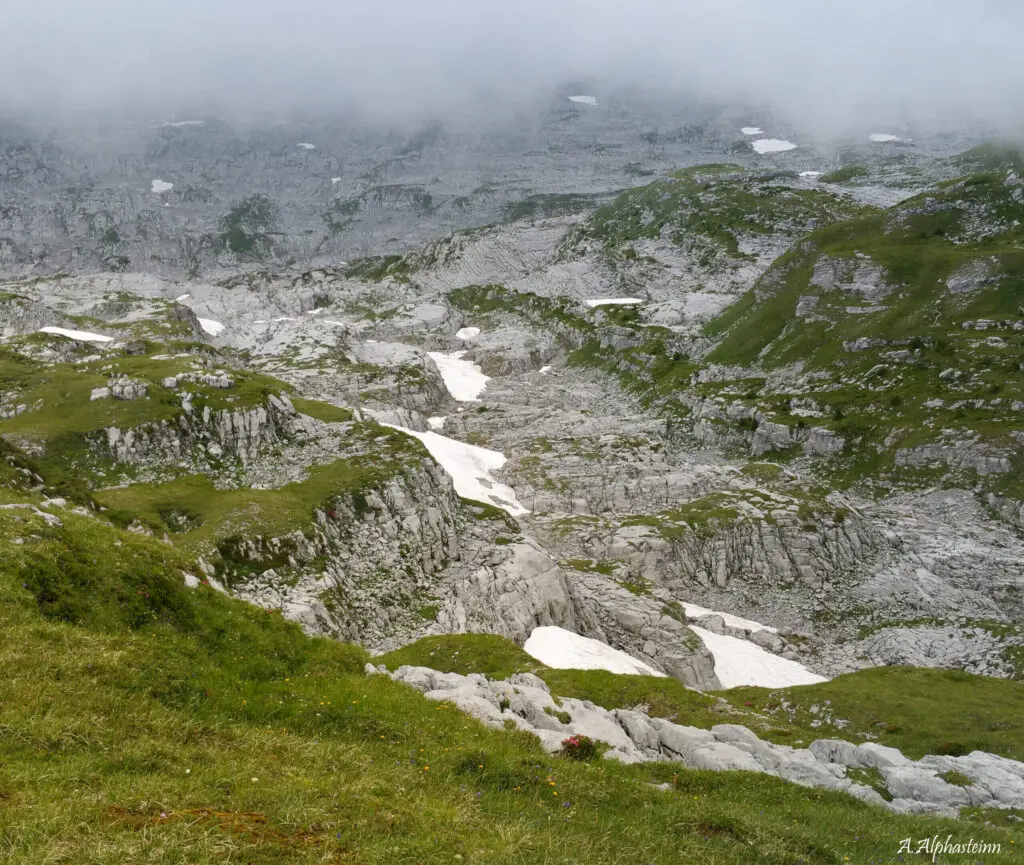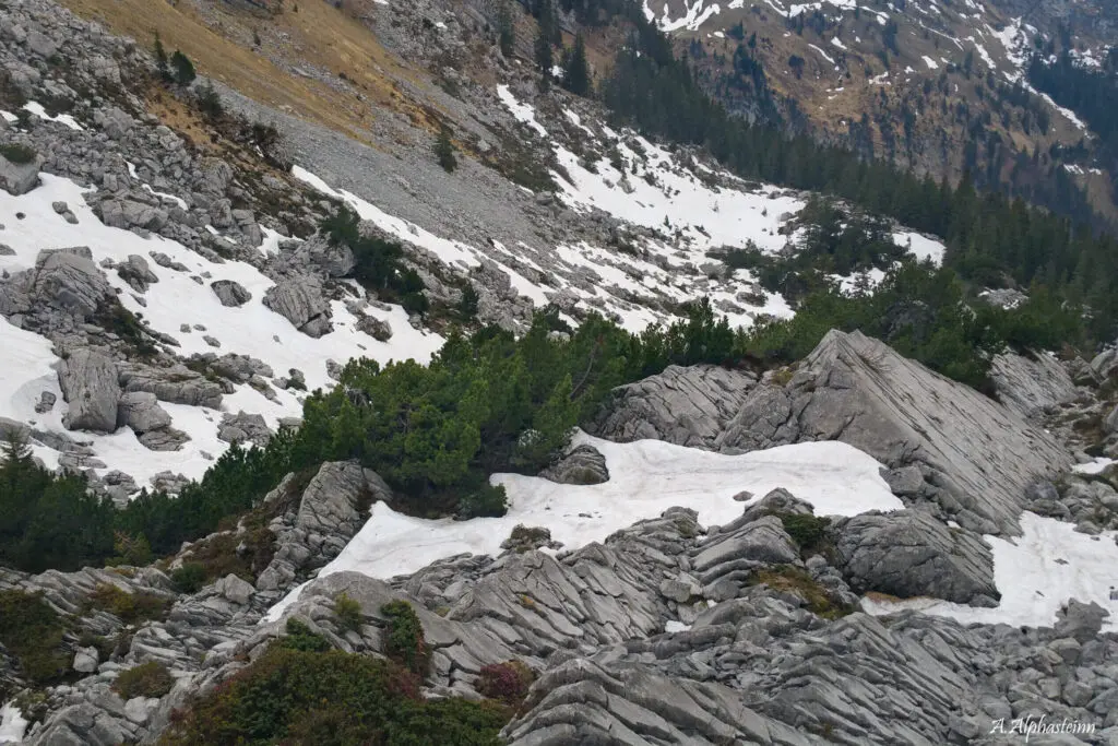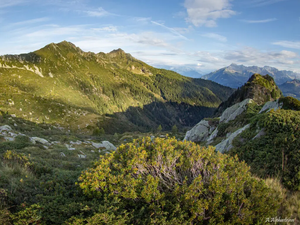 Lass den Bergwald hinter Dir und begib Dich in höher gelegene Regionen. Der farbenprächtige Wald ist nur noch aus der Ferne sichtbar und wird nun vom vielseitigen Gestein, Fels und von üppigen Hochebenen abgelöst. Dein Horizont erweitert sich und Dein Fokus wird sich fortan mit der weiten Ferne beschäftigen. Das Feuermachen ist kaum noch möglich und der Gaskocher übernimmt dessen Aufgabe. Du befindest Dich nun zwischen 1800 und 2200 Meter über Meer.