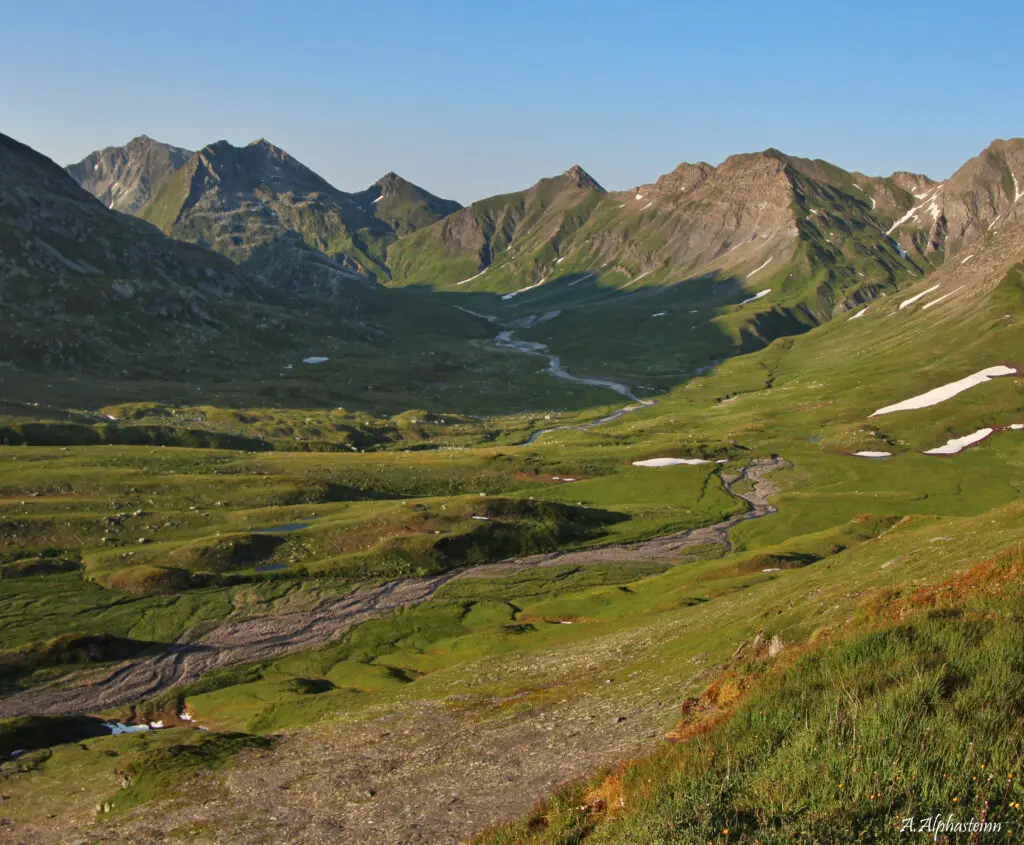 Lass den Bergwald hinter Dir und begib Dich in höher gelegene Regionen. Der farbenprächtige Wald ist nur noch aus der Ferne sichtbar und wird nun vom vielseitigen Gestein, Fels und von üppigen Hochebenen abgelöst. Dein Horizont erweitert sich und Dein Fokus wird sich fortan mit der weiten Ferne beschäftigen. Das Feuermachen ist kaum noch möglich und der Gaskocher übernimmt dessen Aufgabe. Du befindest Dich nun zwischen 1800 und 2200 Meter über Meer.